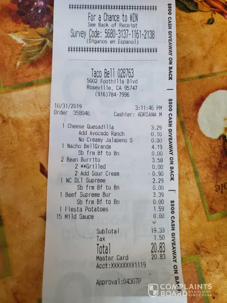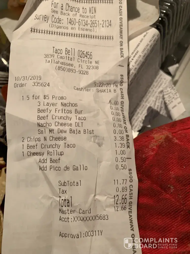 Taco Bell Complaints Page 28 of 124