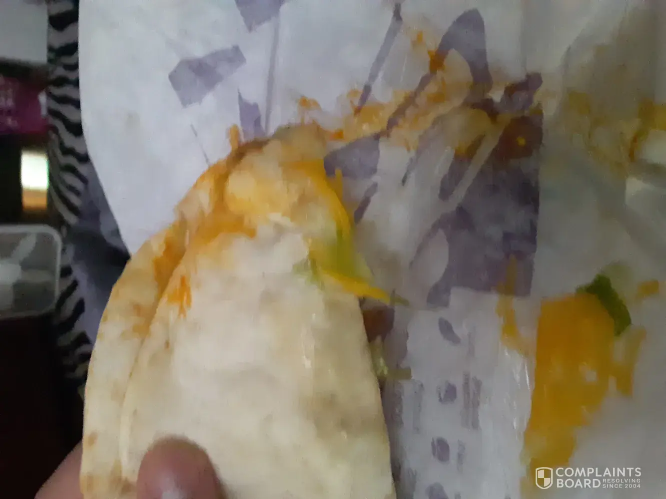 I just left taco bell and found a big piece of a plastic bag in my taco... I have pictures if needed. Really not happy at all. I'm no health physician but I'm sure it's not healthy to eat that. I would really appreciate someone to get back with me. I eat there alot and work night shift about the only thing open. I dont know if you dont take time to look and see what goes into the food or not.