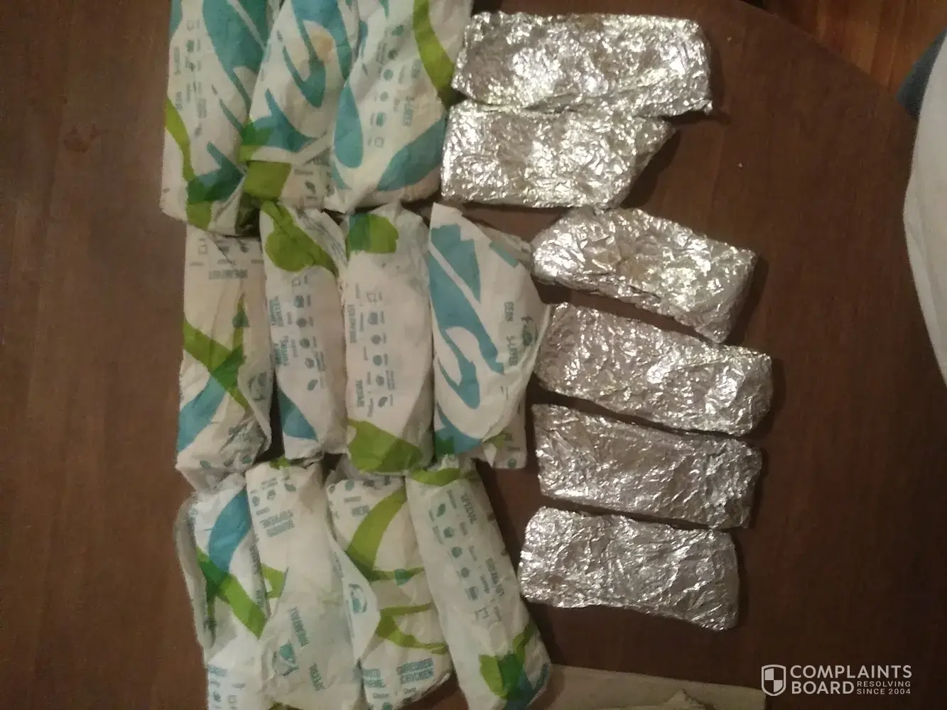I have never seen such a pathetic excuse for what was served me. Of course, I didn't find out until I opened the wrappers at home...20 min away.