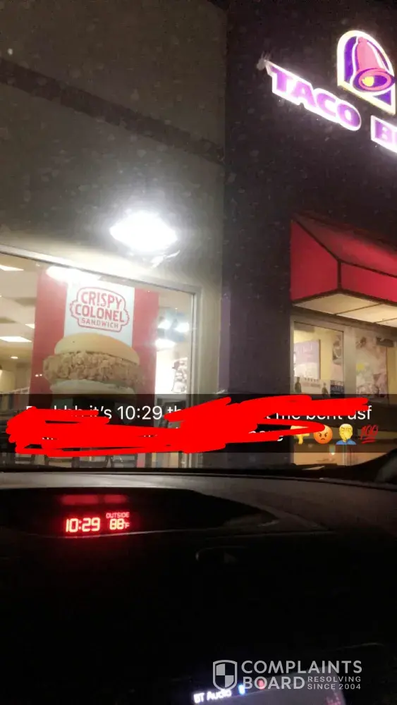 I got to Taco Bell and was waiting from 10:04 until 10:22 and my food was done but they told me they have to drop my empanadas and it will be 7 minutes longer and I waited till 10:39 and told a worker to tell the register lady "Sara" that I want my money back me and another gentle man we're waiting and he got his food when I got my money back the gentle man was 2 cars ahead of me, I am very dissatisfied I no longer was even hungry so many people were driving out and pulling into was ridiculous, some fast food spot they got running . Restaurant #E791064