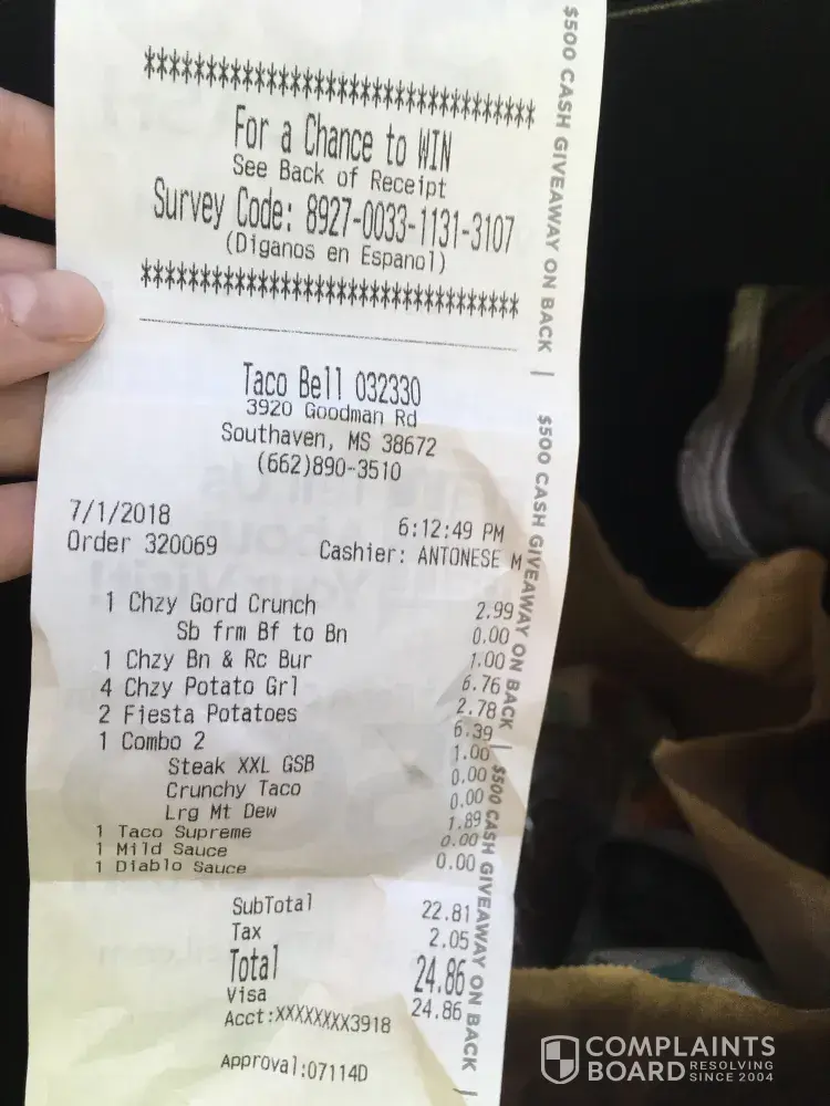 Are you serious ripe den? How is what I said silly? Tell me what complaints are legit? (second thought don't tell me cause obviously you do not know and I don't care to hear another one of your responses) If you want to get all technical, maybe use spell check. Or not comment on others complaints saying they are silly or that if I can't afford it, to order online. Why do you feel the need to put others down saying they can't afford it, and yes that is putting someone down. I already said I could afford it, but why should I pay for something that should 100% not be the same price as a chicken w/cheese quesadilla than just a cheese quesadilla (where the online Taco Bell website has it cheaper), can you tell me how that makes sense? The richest people in America if you do any research are the most frugal. (http://time.com/money/4861261/billionaires-spending-habits-frugal/) I am not rich but I am frugal and I don't want to feel I am getting ripped off. There was a story in the news yesterday of a man suing McDonald's because he went to the trouble to order every item on one of the "meal deals" a-la-carte to find out it is cheaper to do so than to order it on their meal deals. Can you not see the justification to do something on principal? Your comments to me are unwarranted and unneeded. I would appreciate you letting someone have their own right to make whatever comment they choose fit as long as it is non offensive. I still don't get why on a COMPLAINT site you even felt the need to write, and write and write again.