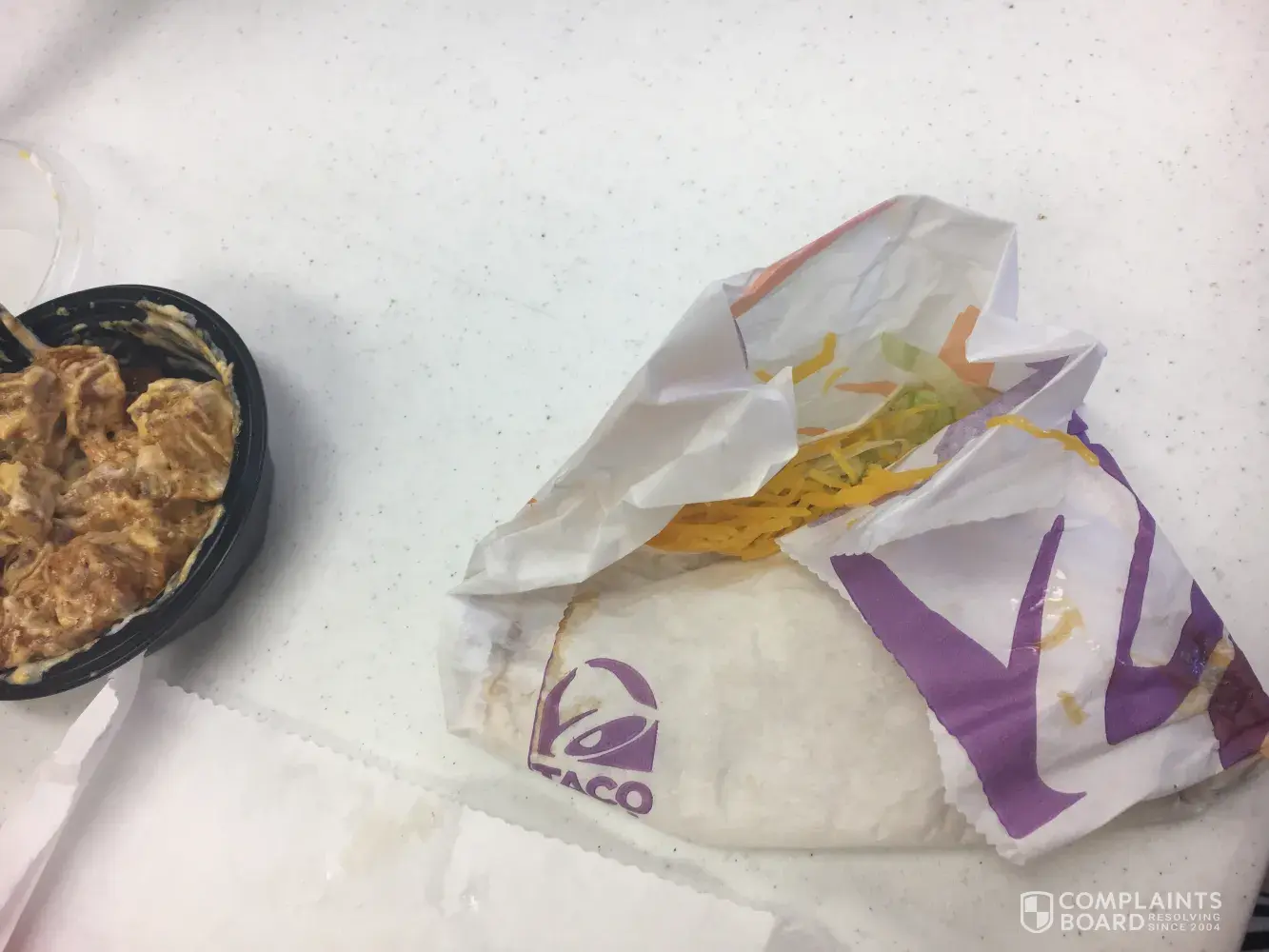 My quesadilla was smooshed and folded in a wad in the bottom of the bag, sauce was spewing out everywhere and there was hardly no chicken. Cheese fell out of my taco as soon as I tried to open it cause the wrapper was folded into the taco. And I emphasized no sour cream on cheesy fiesta potatoes and there was a huge blob of it right on top of them.