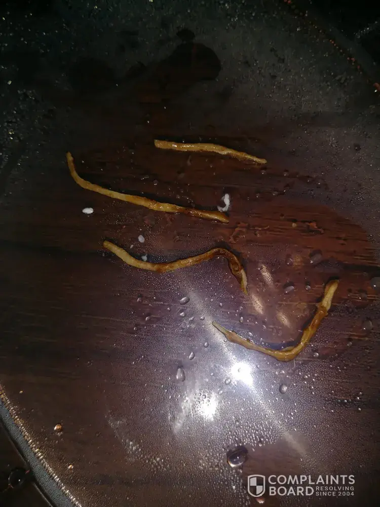 Sunday May 20, 2018 I took my daughter to Taco Bell and she purchased a Power Menu Steak Bowl. When she got home about 930 PM she sent me pics of some white worm like things in her food. She was told bring the bowl back to the Taco bell where was purchased in the morning and speak to the manager. The shift manager called the General Manager who spoke to me on the phone and said he had received a text message and pics of the said foreign particles in the food. He explained to me that is was impossible for any worms to get in their food and that maybe someone had some in their pocket and put them in the food. I was told to leave the food with the shift manager and that someone would be coming to the store to take it to the Ecolab. The general manager got to the store to look at the food before it was to be taken to the lab and called to tell me that it just looked like maybe pieces of lettuce, but it would still go to their lab and he was going to contact their lawyers. It has been 3 days now and I haven't gotten any word as to what the white worm like things were. My daughter ate at least two forkfulls before she saw the white things dangling from her fork. I figured that if it was food particles as he claimed that I would have heard back from him by now. I don't know what my next step should be. I have left the GM a text message but I haven't gotten a response.