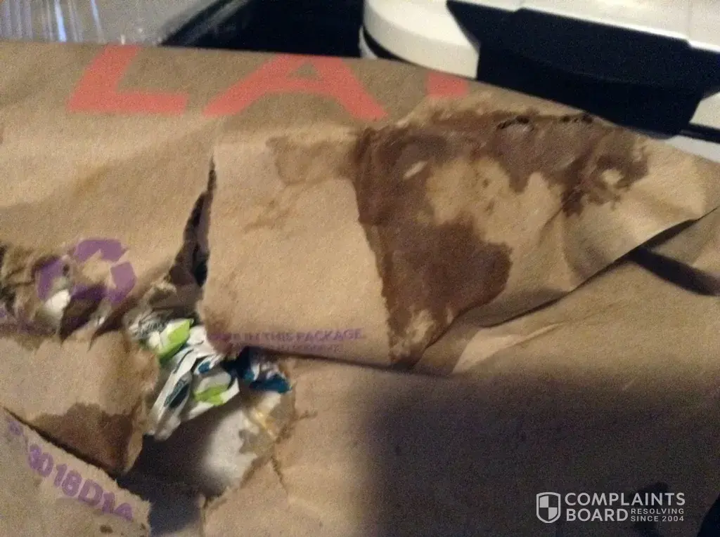 I'm enclosing a picture of the bag that my order was in. Two of my items were wet and soggy due to the bag being wet on the bottom. I sent a complaint to the store today.