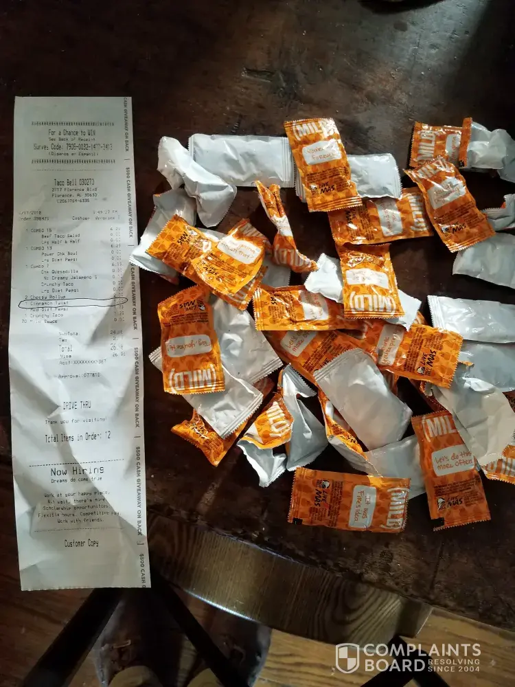 Today I ordered two soft taco supreme's and instead I got two hard shell regular taco's. Aside from the supreme's being more expensive I hate hard shells and I love sour cream on my taco's.