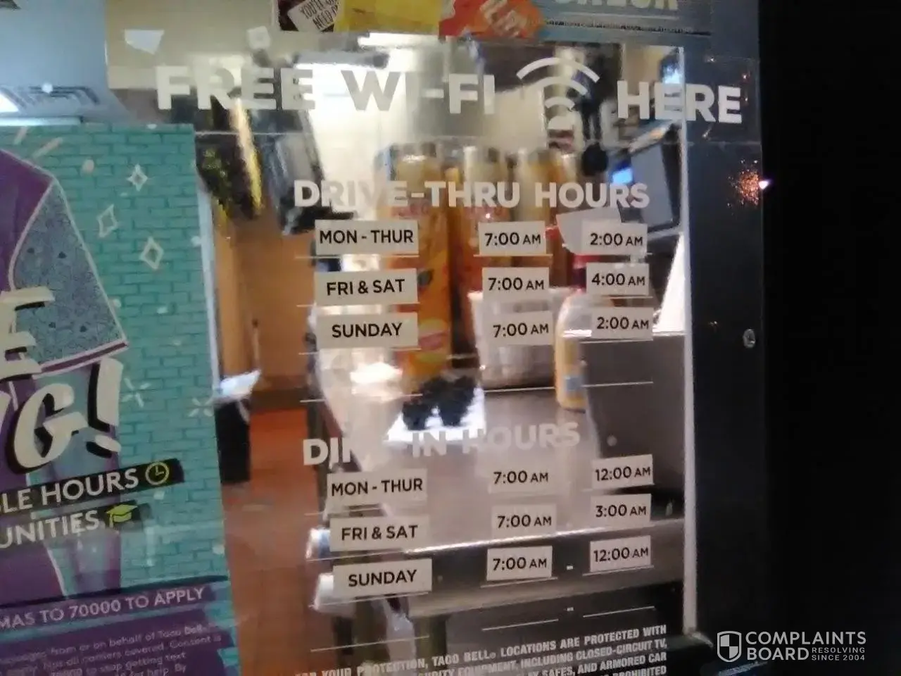 I arrived at my local Taco Bell in Charleston, IL at 2:40am or so. Today is Saturday April 1st. Taco bells closing time is 3a for the lobby, and 4a for the drive thru. I took several photos as I waited for upwards into 10 minutes at the drive thru with no answer. All the lights in the building were off save a couple in the kitchen/office area. A couple employees even came out to be caught on my camera. I've been a regular at this taco Bell for years now, and this is second time they've closed early this year! If you're ever in the area, just don't even bother thinking about late night taco Bell, if the order isn't right, they may not even be open.