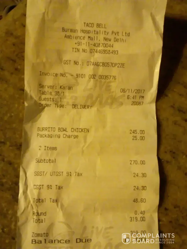 I am honestly in disbelief about the entire situation. Because the issues I have had now go beyond my local restaurant, I have no choice but to believe that this is just what kind of company Taco Bell is. They do not respect or value their customers.