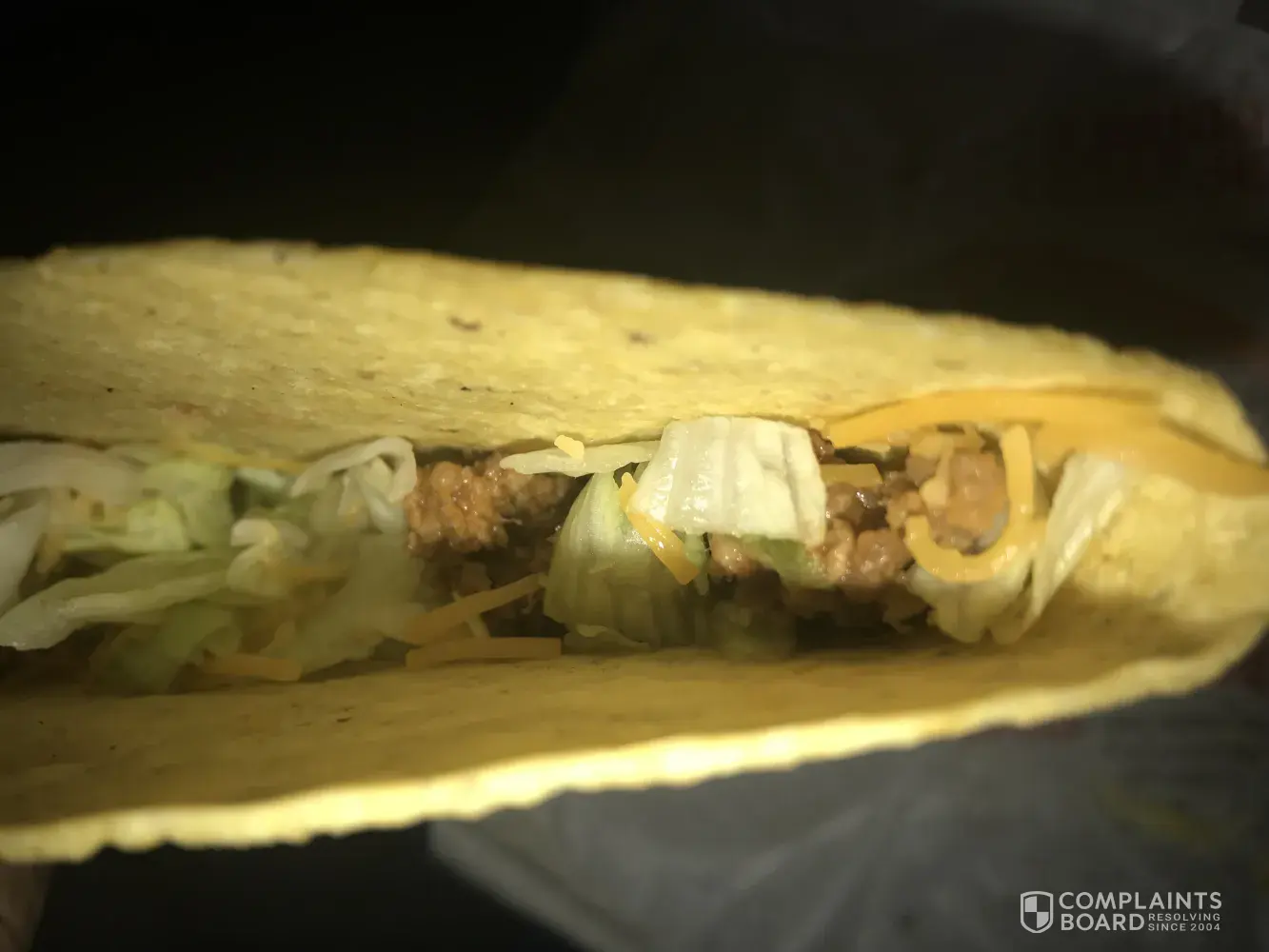 I am submitting this complaint because I have had an on going problem with this specific location. I usually always order crunchy tacos and I just recently moved so I am going to a new Taco Bell and it is absolutely terrible. The tacos are always soggy and most of the time the shells are cracked. Tonight I ordered a taco 12 pack and every single taco was extremely soggy on the bottom & the top of the shell was stale. All of my tacos were cracked and I had to eat them almost with a fork. It was very disappointing and I will never be going back to Taco Bell again.