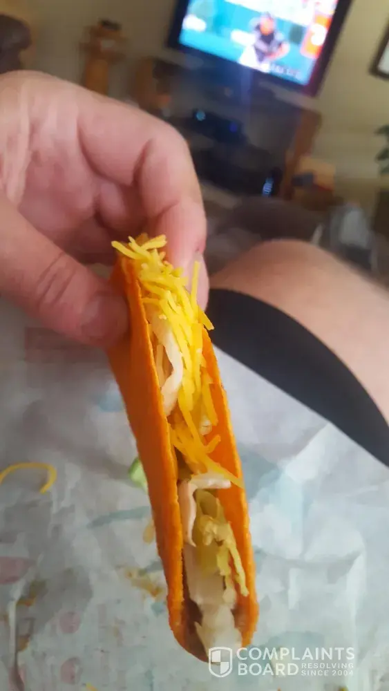 quite simple: there was nothing in my taco! That's pretty much fraud if you're paying for something and you get almost nothing? This is Taco Bell east in Jupiter Florida, what a joke!