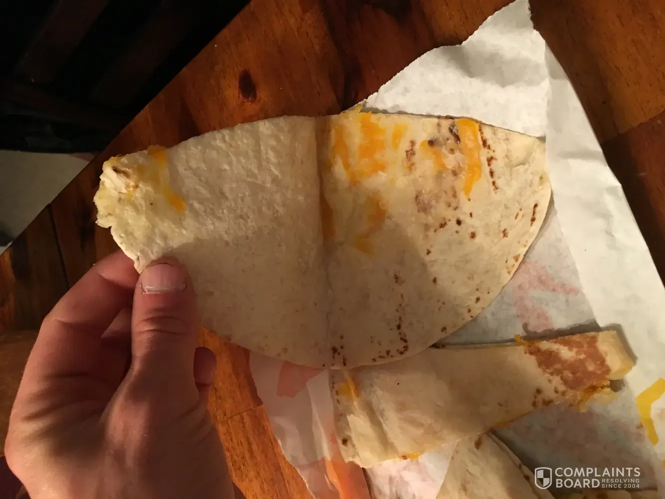 There was a medium sized piece of plastic in my quesadilla. The manager has been very kind. However,