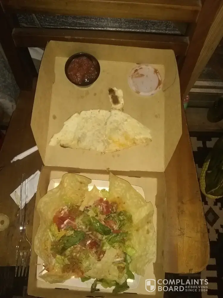 I ordered 1 steak quesadilla & 1 chicken quesadilla. I got 2 chicken quesadillas. I wanted a Mexican pizza, they gave me a taco salad with old produce & HORRIBLE smelling dip. I called them & they were rude as hell. I have pictures.