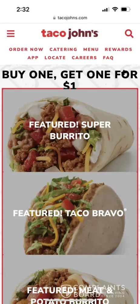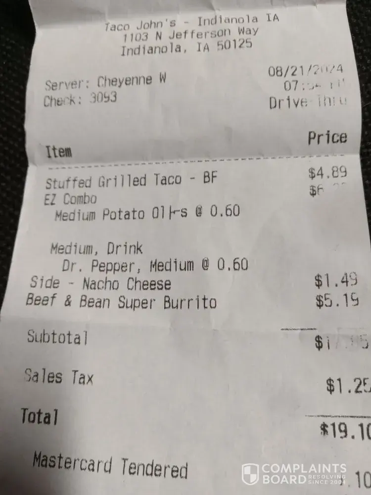 Read full complaintIs Taco John's Legit?