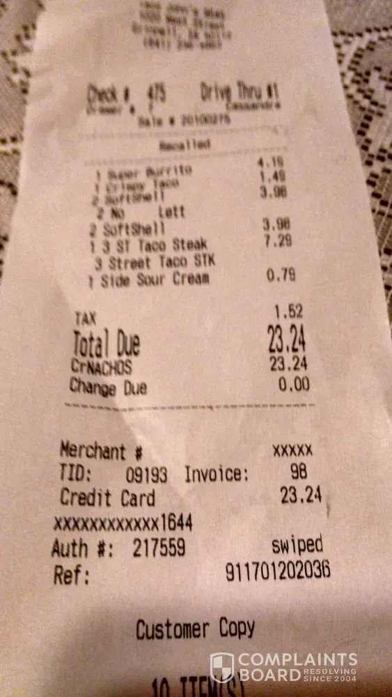 I ordered a hard shell taco and didnt get it