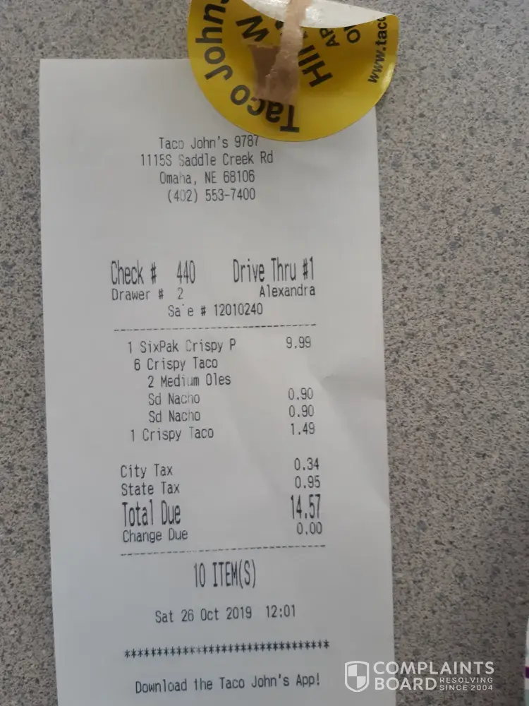 I stopped in at Taco johns at 1115 South saddle creek in omaha Nebraska for lunch I ordered 5 super hot tacos and a large Pepsi and the cashier ignored me at the counter when I told I wanted large Pepsi I did not get my large pepsi which I feel she should have just given it to me feel free to contact me at [protected] regarding this matter