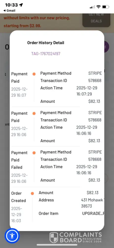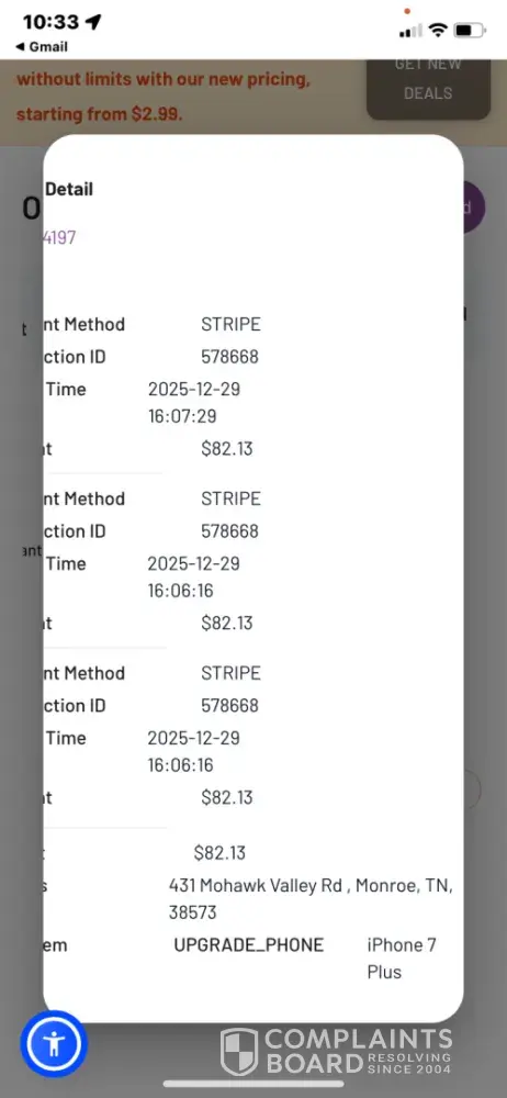 Upgrade iPhone purchased for 82.13 but never received it but they took the money from credit card!