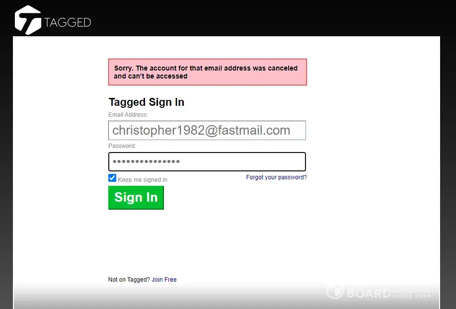 "A photo you have posted to Tagged has been reviewed and found to violate Tagged's terms of use. Your Tagged account has been cancelled and can no longer be accessed."