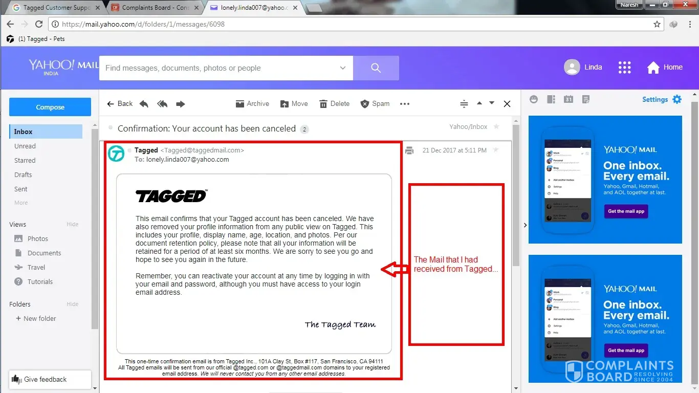 My account has been canceled for no reason mentioned or even been notified by Tagged Management,