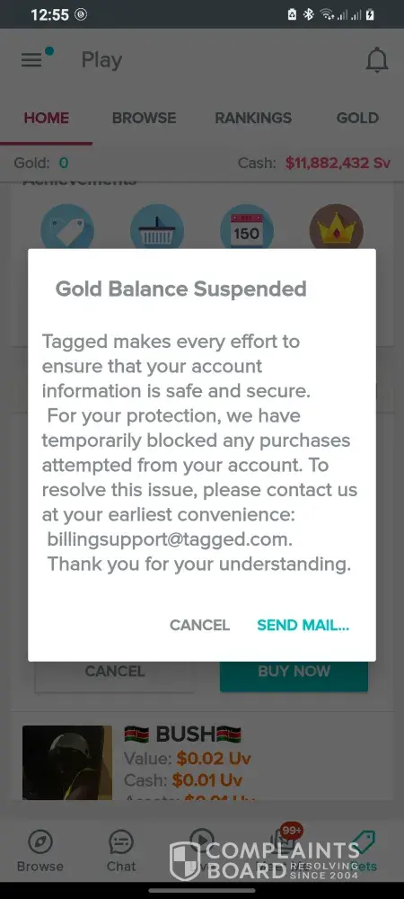 Tagged My gold balance was suspended for no reason at all .