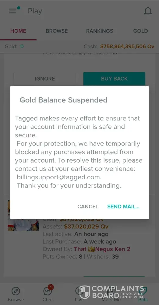 I purchased $19.95 when it was for double the gold. I cashed in all but 29, 000 in gold to keep it for using later. I came back to tagged after being off over night and found that my gold vanished. I would like to know why that happened to me. I am a paid member of tagged and enjoy playing pets. Takes the enjoyment away when gold is taken away from me that I purchased. I have been scammed twice in pets by two other players draining their account after buying them. Would at least be able to not be scammed from my gold that tagged controls. Thank you, Bill Prentice request my amount of gold to be returned to me