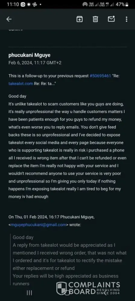 Takealot complaints: history and resolution overview