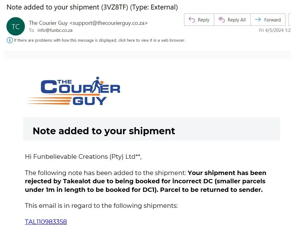 Order number from Takealot: #[protected]