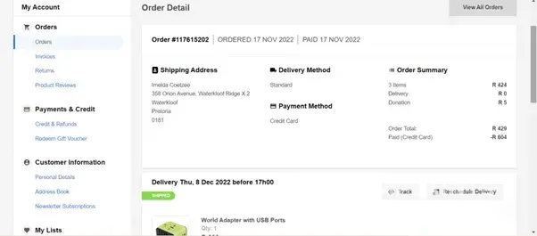 I have been liaising with them for over a week and my order has still never been delivered.. I paid for an order of over R3000 and only received 2 items. Till today the error on their side hasn't been rectified and they keep on sending me miscommunication.. I am quite disappointed and will never be buying from them in a hurry. The item that I received in my delivery was instead a Peppa pig reading book.. which I never ordered. I have logged numerous calls and sent endless emails explaining what had happened and they still keep on sending me wrong information. The items on my order that were never delivered seems to be logged as items that I want to have returned, but these are the items that I never received.. to date, I have not received my order.. and I ordered these items on the 25th November