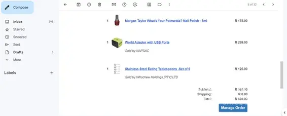 The email i got for confimation states the total was R599 and that i payed R599.
