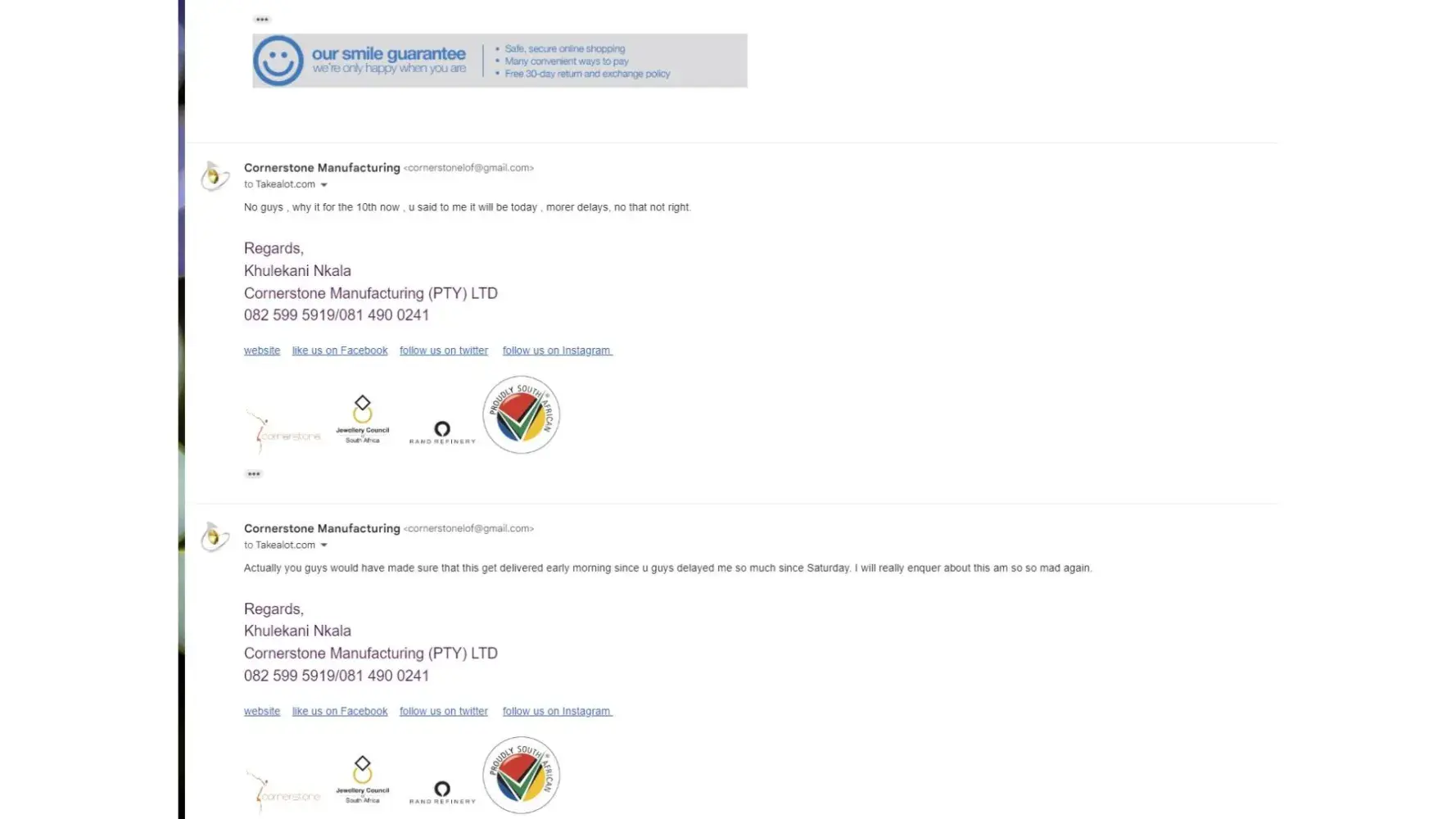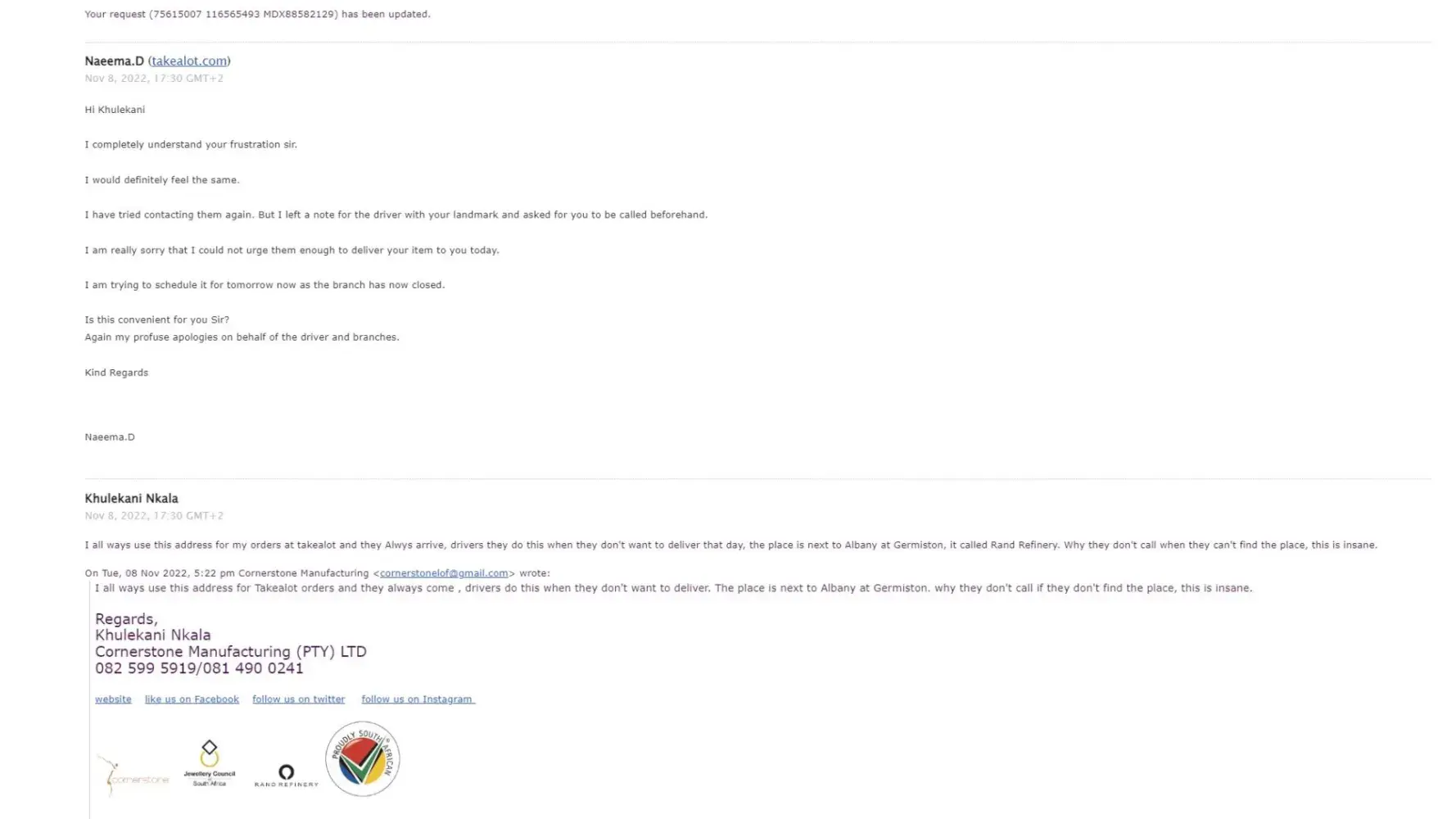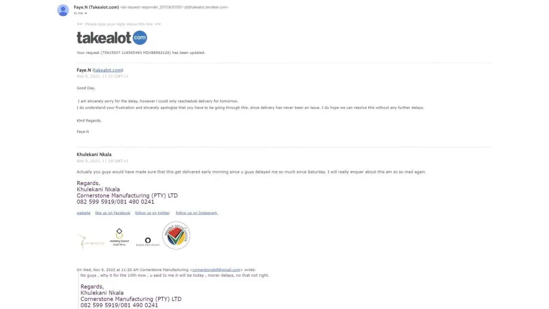 On 23 October 2022 received an email from Samantha.m saying I will escalate your response to our order fullfilment team. That is the last we have heard from takealot.