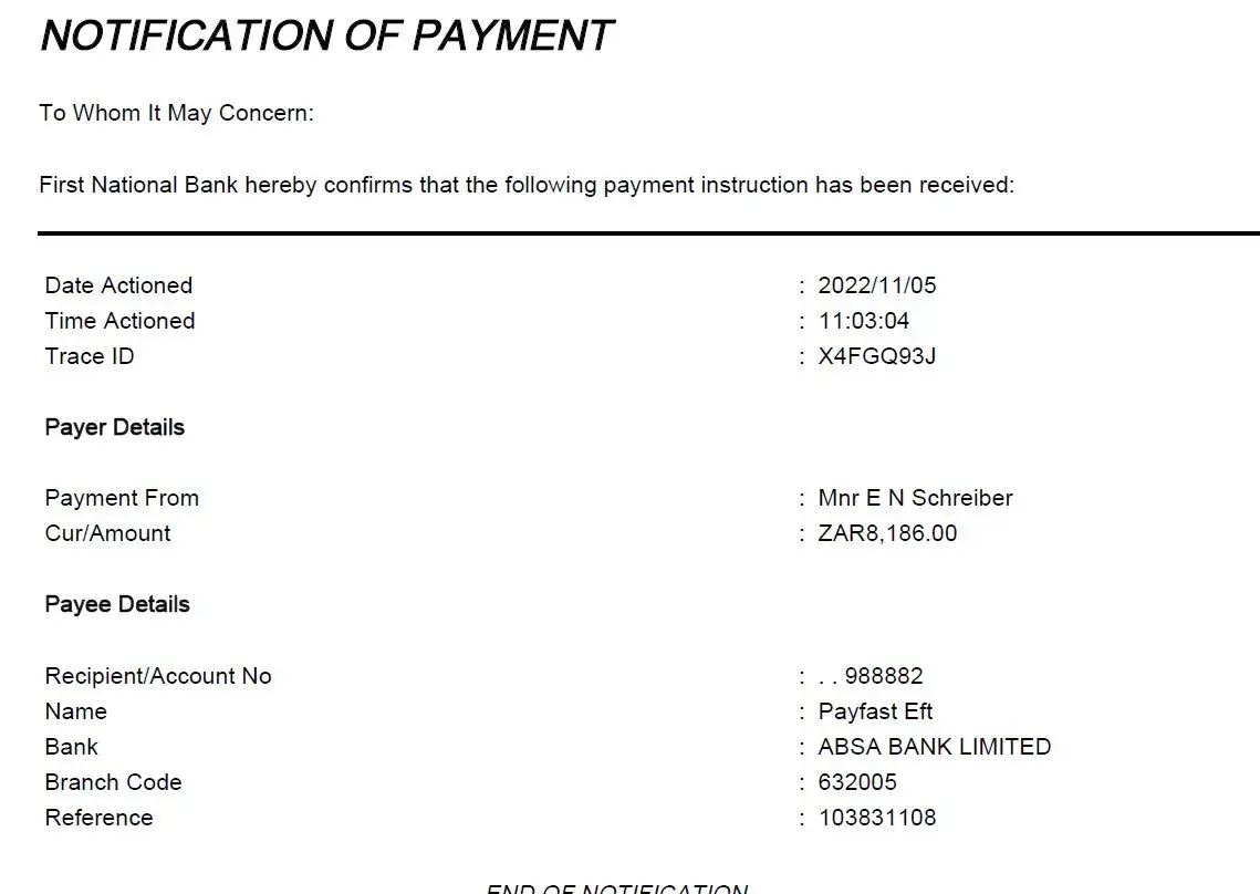 while still receiving confirmation from Takelotand FNB another unauthorised payment notification for R566.37 was received.