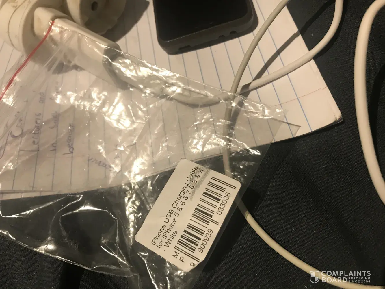 An iPhone USB cable and earphones