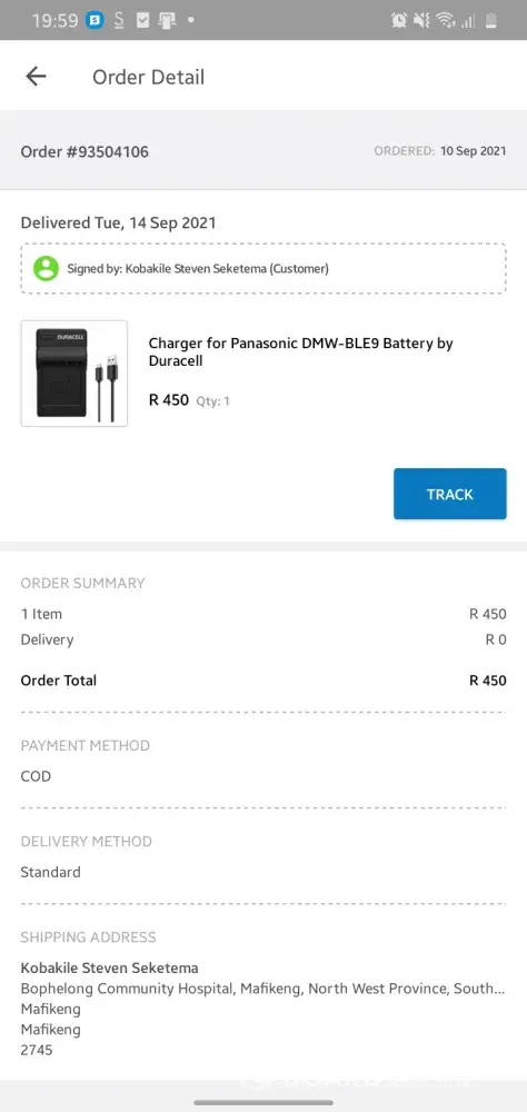 I tried to track my delivery again on the Takealot. app and it showed that my order was delivered and signed by me at 19:03. According to my knowledge nothing was delivered to me so I don't know wether to label this as a scam or poor service or dishonesty from Takealot's delivery team.
