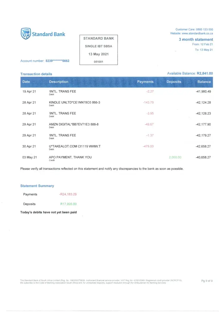 However, my credit card (enclosed) shows that Takealot was paid R479, 00 on 30 April 2021. To date I have not been credited with this amount which implies you have been paid.