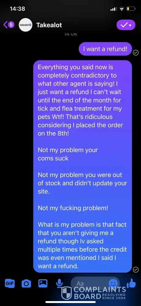 So I still have no flea treatment that I paid for. No refund. No credit.