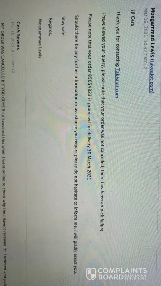 takealot reply #3. Apr 9, 2021, 13:39.. I will be escalating this to the relevant department for this matter can be investigated accordingly, as soon as we have an update we will be in contact with you directly