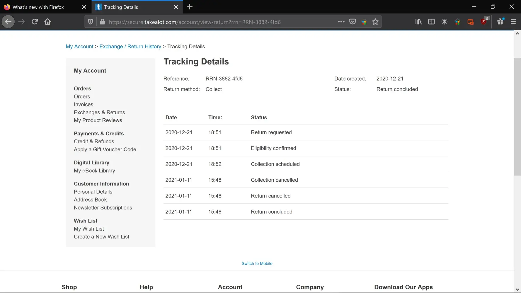 Secondly I scheduled a return of a product over a week ago as it was the wrong one and want to swop for correct one and still its not been collected!