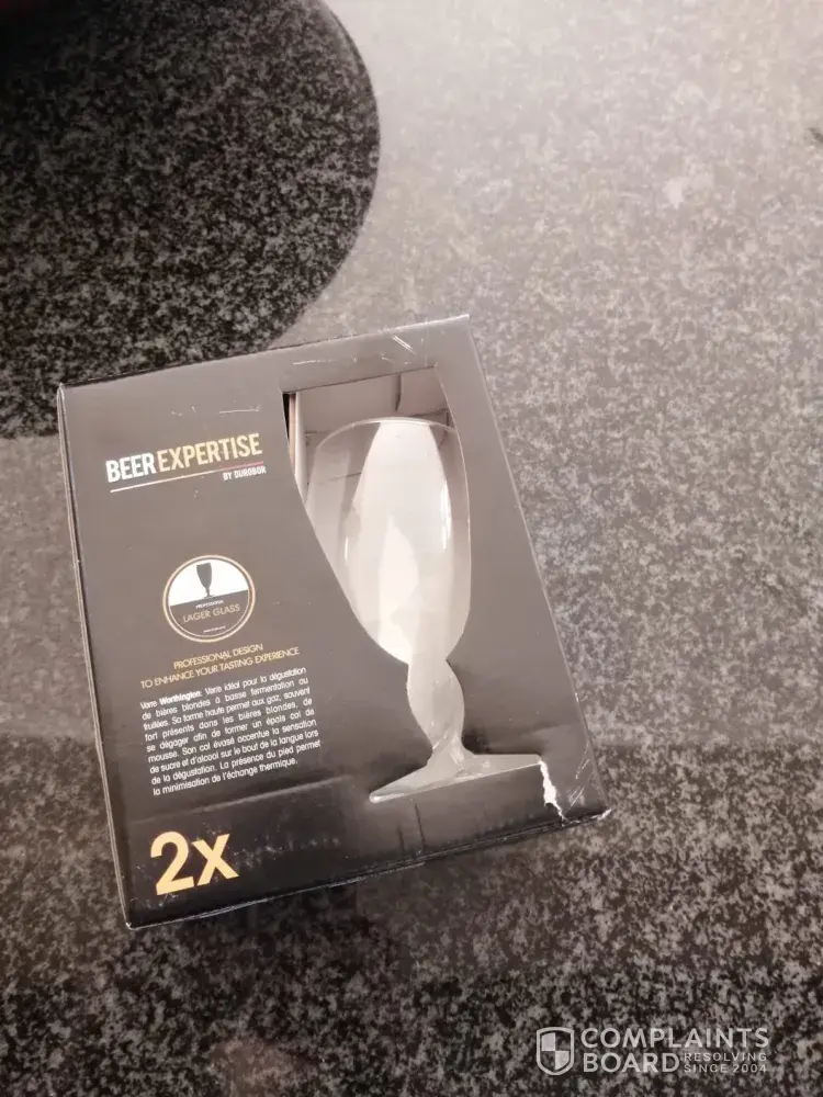 The one pack of glasses that has 2 large glasses one of the glasses is broken. I received the box yesterday 24-08-2020 that I ordered allot of glasses. When I opened the one box of beer expertise large glasses one of the glasses was broken into pieces. I am very unhappy as I think these orders they are supposed to handle with care. I would like to request that the glass be replaced. Please contact me johan botha on [protected].