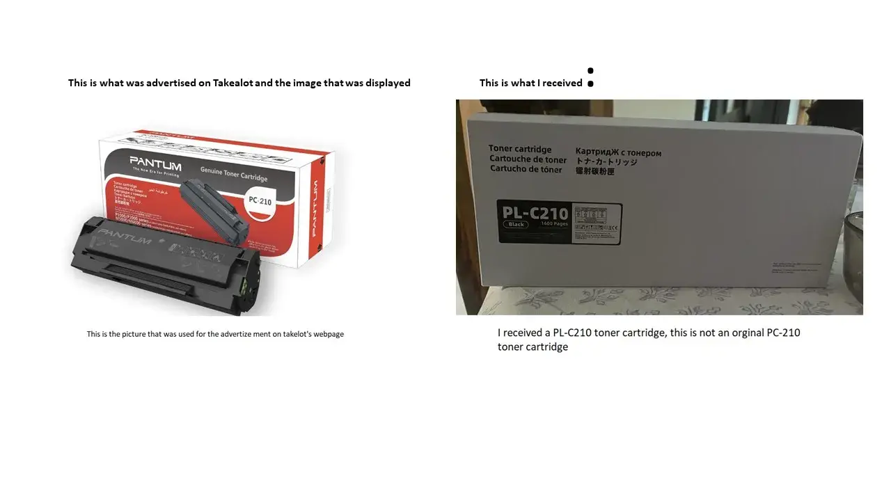 Read full complaintBought a Toner Cartridge from Takelot South africa - falls advertising