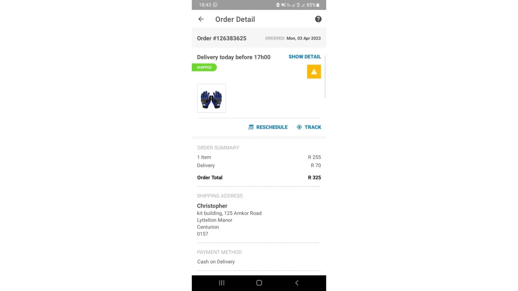 On Saturday, we checked the tracking and to our disappointment, it showed delivery for Tuesday only. Had we not paid an additional R70 for faster delivery, I would not have minded. However, you choose to pay extra and then they change the date anyway! To a date where normally you wouldn't be charged extra for. I feel completely done in and I'm exceptionally angry about this.