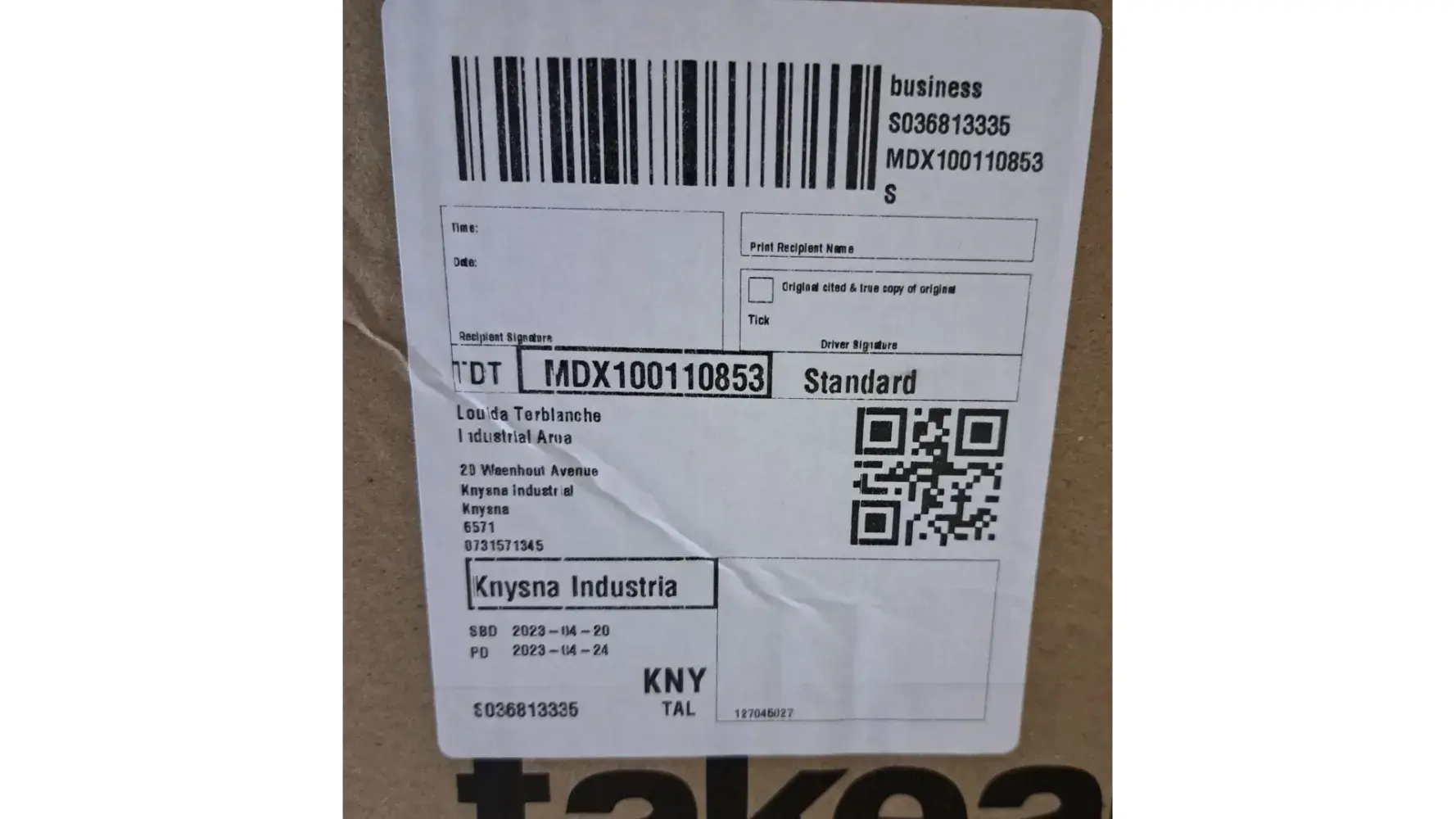 This morning someone dropped of a delivery for a Mr Celvin Bowers at Firtdistribution in Century City.