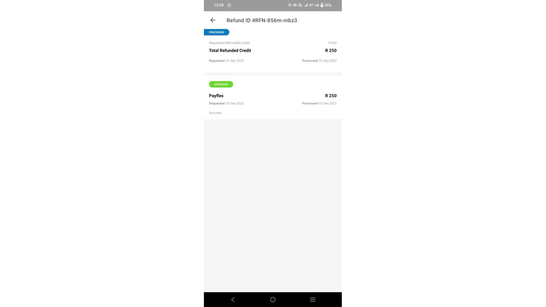 I have two refunds which has not been refunded to my account of 01 December 2022 and 15 May 2022. I have two refunds which I did not receive yet, RFN-d639-5bwb and RFN-856m-mbz3. I would kindly like to know when will I receive the refund. Good day, RFN-d639-5bwb has been requested and processed on 15 May 2022. I have not received the refund as well as refund RFN-856m-mbz3 has been requested and processed on 1 December 2022 and it has been approved by Payflex