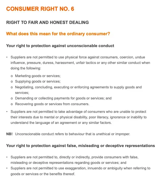I have thus pasted screenshots of my rights as a consumer in South Africa, and I will take legal action against Takealot for this incident. It is unacceptable and I am well within my right to fight this issue.
