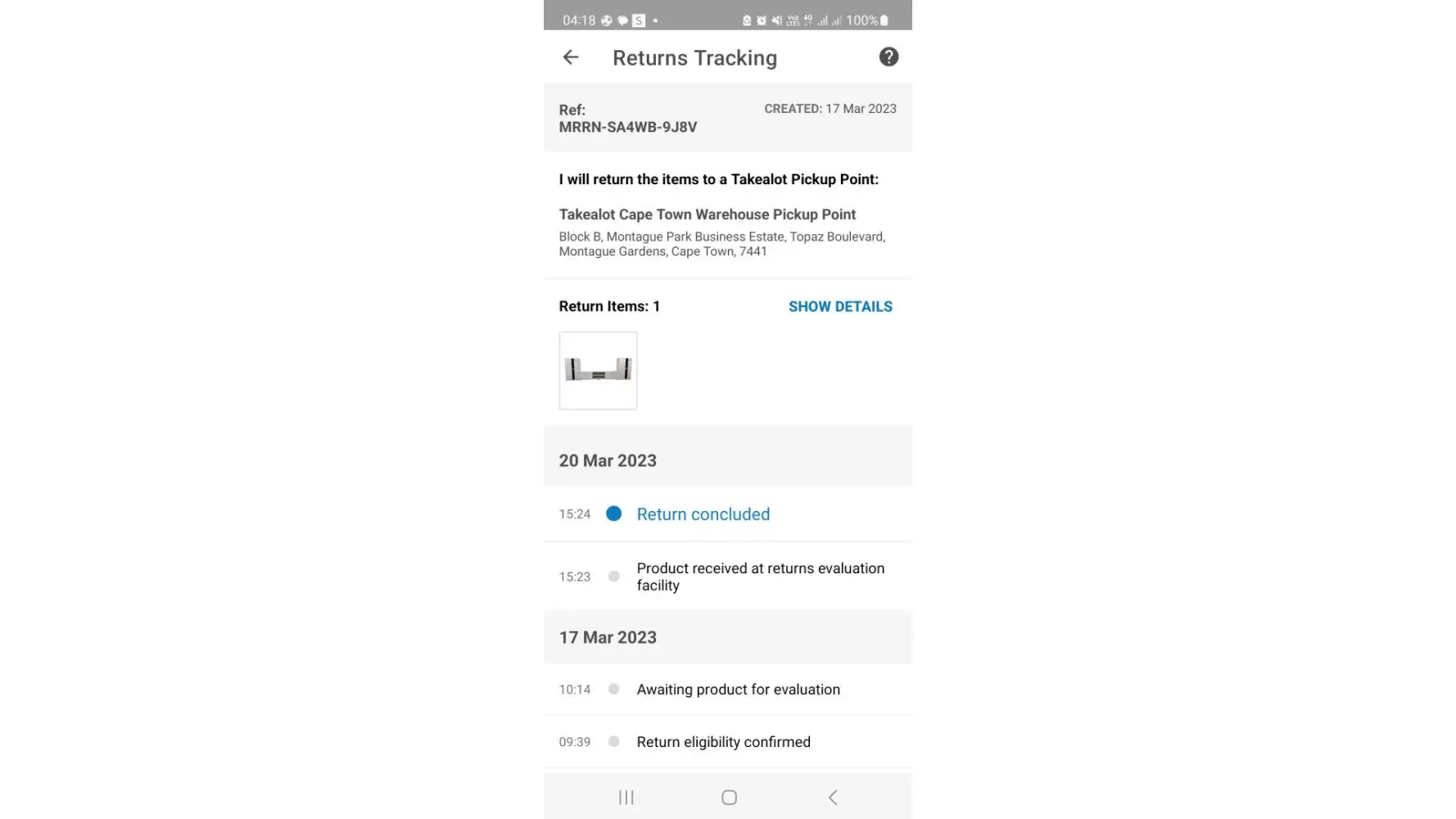 I asked for a refund for a product that takealot failed to deliver on the 16th and on the 17th March 2023 I asked for a refund until to day its a struggle to be refunded.