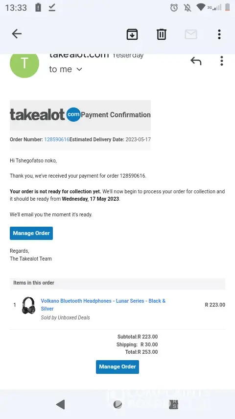 My Takealot order number:[protected]
