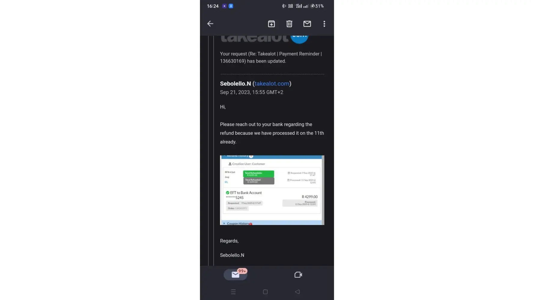 If you need further assistance give us a call on [protected]; or email [protected]@takealot.com.