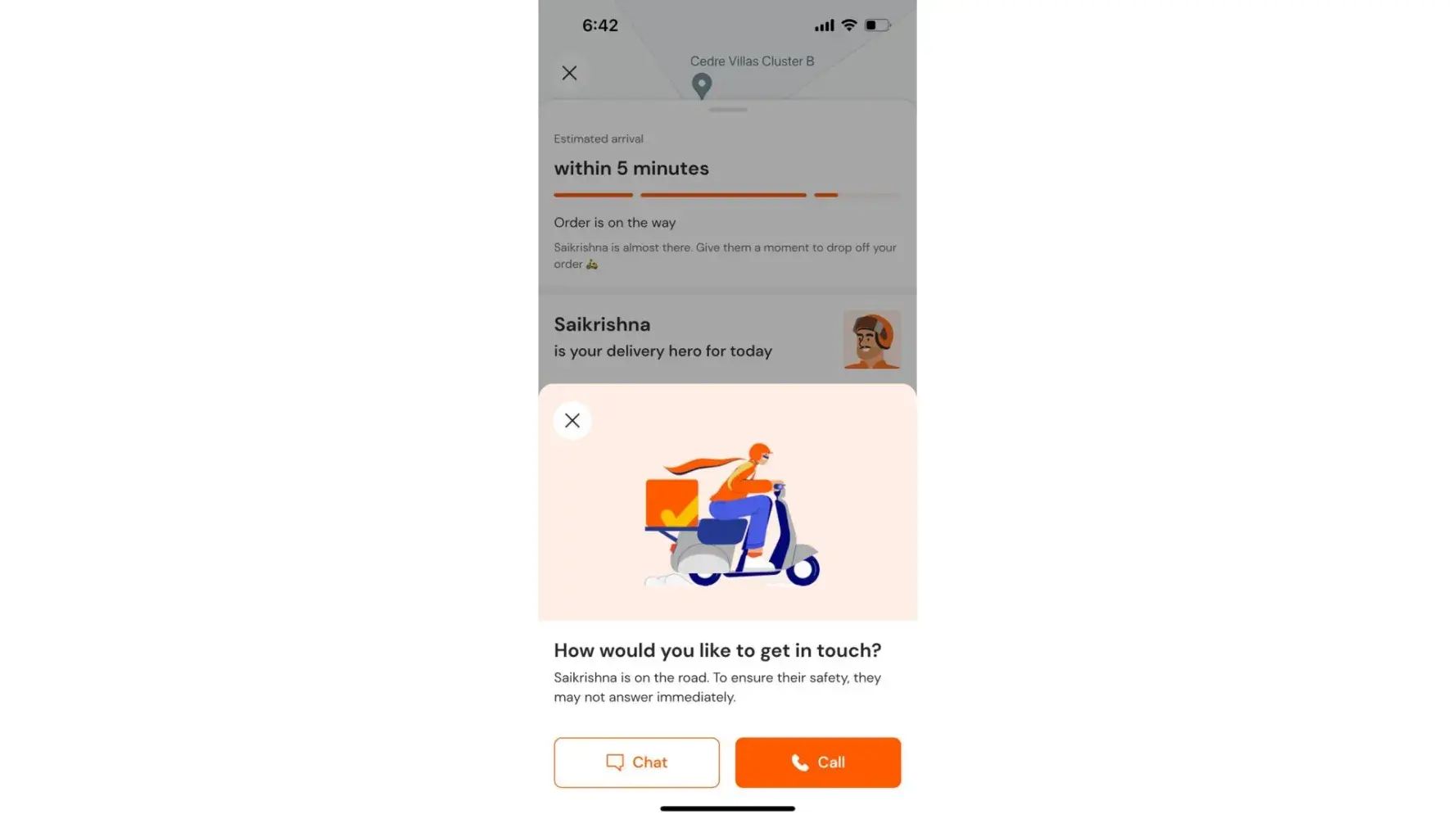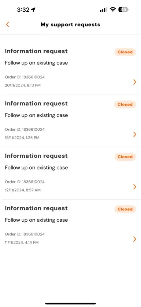 My order delayed for more than 4 hours and after contacting customer support they did not help and the employee ended that chat by canceling my order upon my request and hang up without my feedback and satisfaction I will never use your app again after 4 hours I lost my appetite cause of u