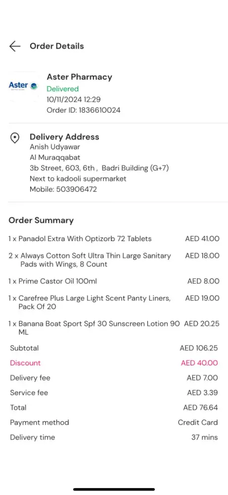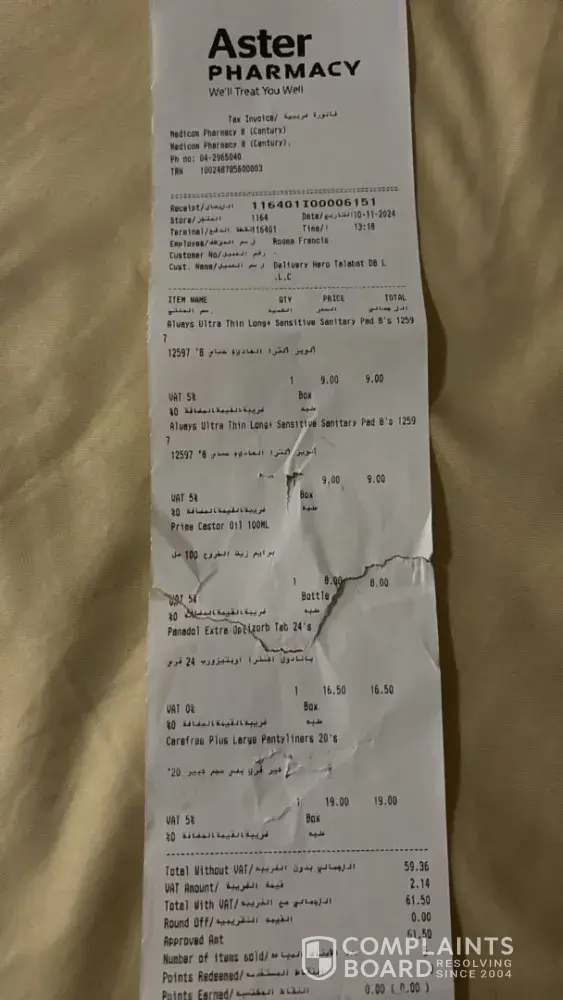 had ordered 1x Panadol Extra with Optizorb 72 tablets , (Aster Pharmacy via Talabat app) but was instead delivered 1x Panadol Extra with Optizorb 24 tablet . several complaints to talabat has resulted in no success.