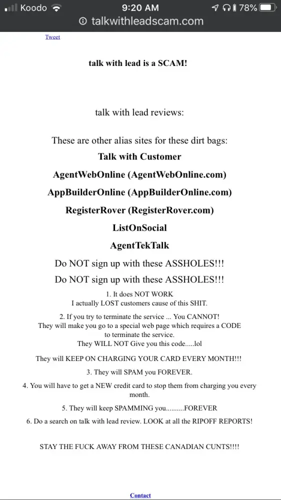 Utterly disgusting business practices. Trying to sign me up to make sure I answer my customersws/leads quickly and they dont even bother to call! They just spam you via your website with an insulting message, dont answer when you try to contact their management o lodge a complaint and then tell you they signed you up as a VIP. Disreputable and untrustworthy in every way.
