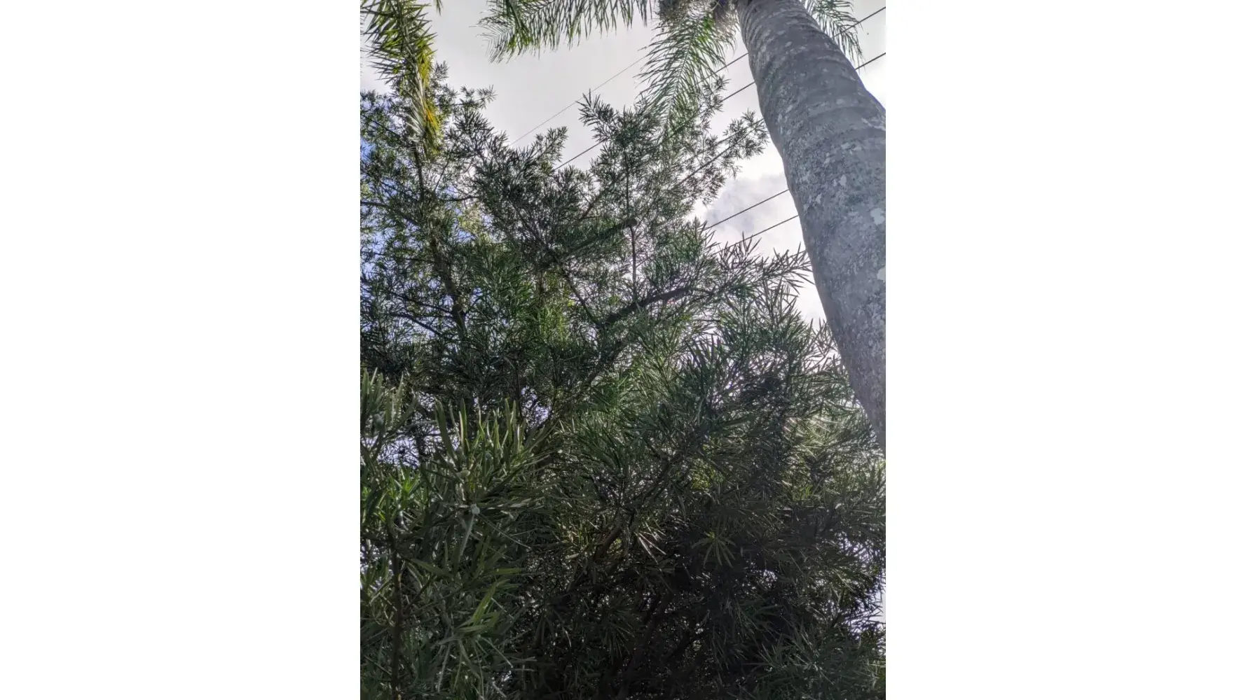 Desired outcome: Remove the cut branches from the tree that looks like a pine. Remove the debris in my yard. I would like to see them not trim these two palms in the future.