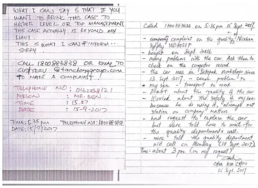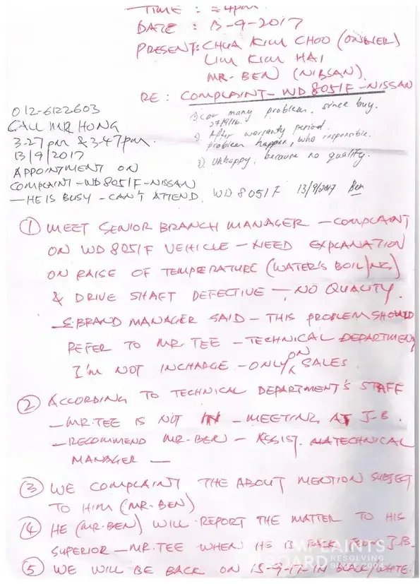 Please make a complaint straight to Nissan Tan Chong in KL. If not effective, escalate to the nearest Tribunal Pengguna office.
