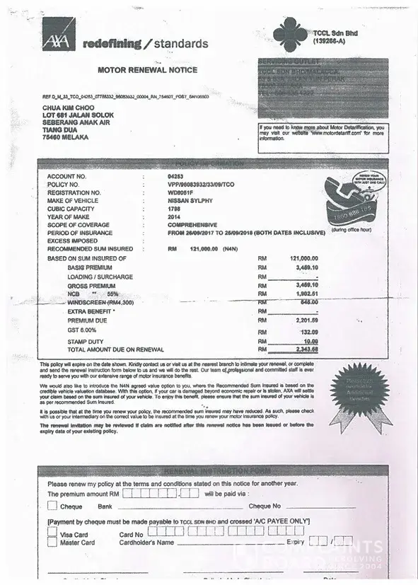 vi) 1 copy of proof owning 2 nissan vehicles:- MAH8051 and BBX8051